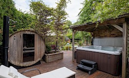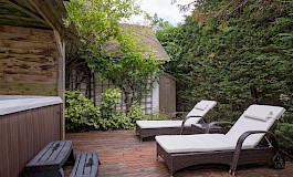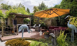 - Lovely private garden fully enclosed by mature hedging and planting as well as separate large garage and driveway parking for several cars