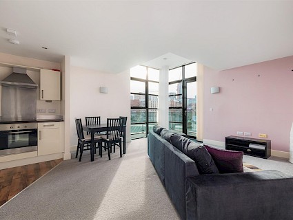 - Good sized open plan living space with excellent views across the city